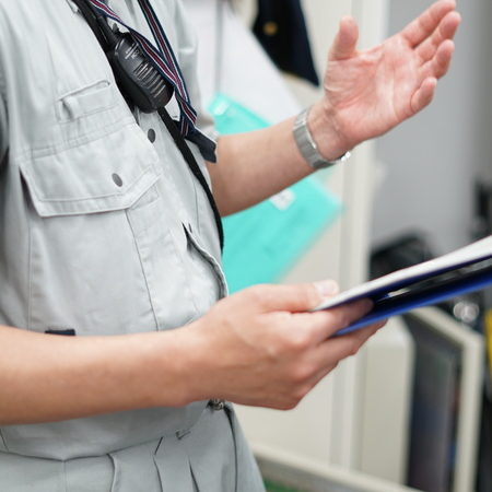 建物内を巡回しながら、各種設備を点検。「正常に作動するか︖」「どこかに不具合はないか︖」を確認していく仕事です。何か不具合を⾒つけた時には、簡単な修理も行います。