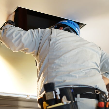 建物の新築時に設置を⾏なうのはもちろん、消耗した設備の取り換え⼯事も⾏ないます。まずは先輩のアシスタントとして⼯具を渡したりしながら、⼯事の流れを覚えていきましょう。